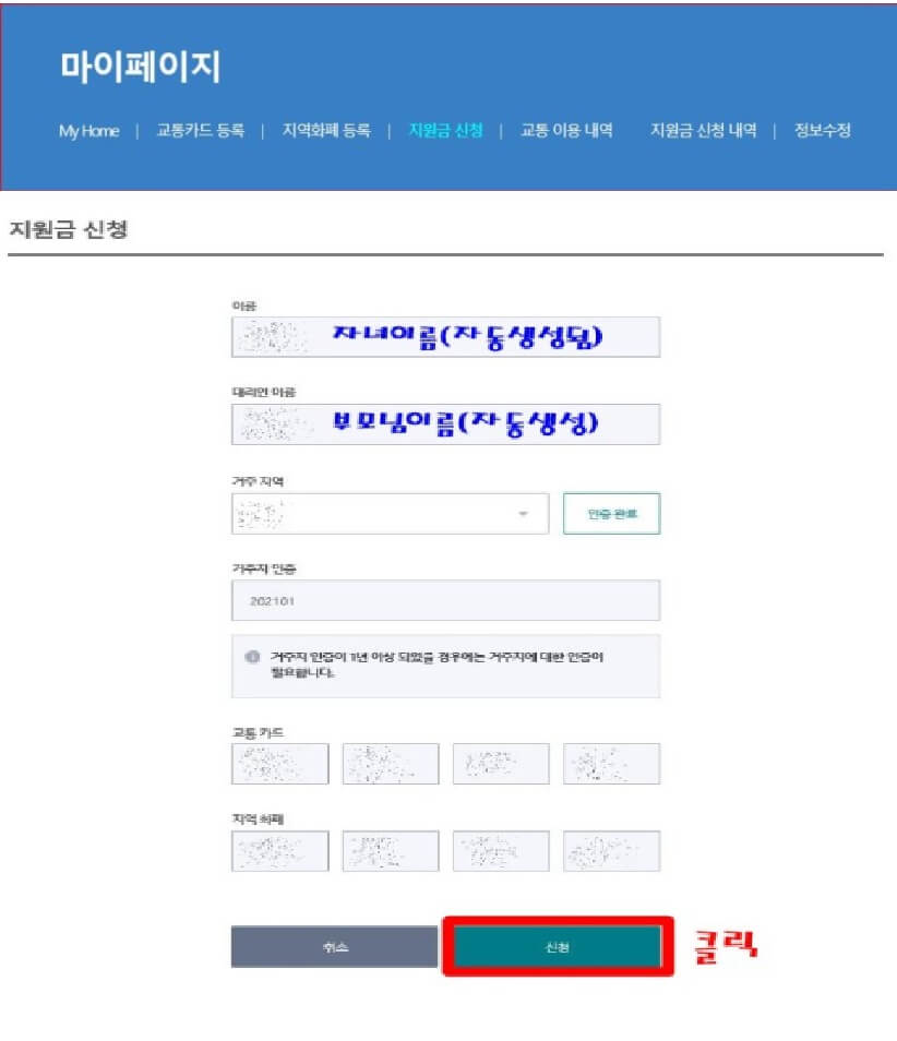 작년에 교통비를 지원받으셨던 분들이면 홈페이지 로그인 후에 거주지 확인 후 교통비 지원 신청을 해주시면 됩니다.