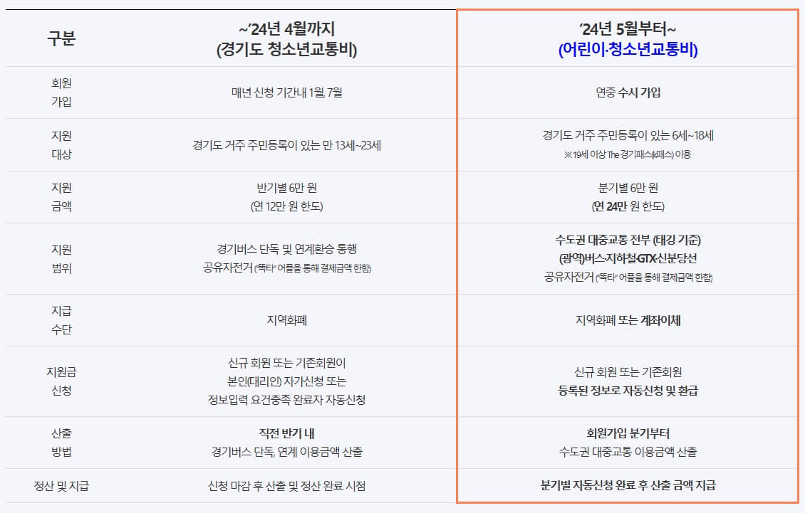 2024년 5월 1일부터 경기도 청소년 교통비 지원포털은 새로운 시스템으로 이전하면서 몇 가지 변경사항을 발표했습니다.