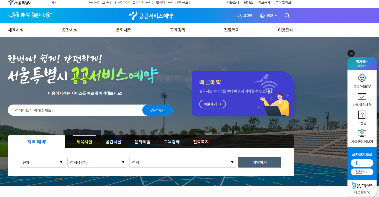 서울시 공공서비스 예약 시스템 접속