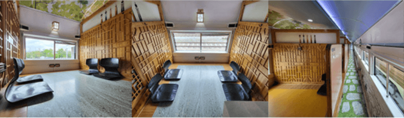 이용가능한 호차는 총 5개로 1호차, 2호차, 4호차는 일반 객실이며 3호차는 힐링실(카페, 이벤트공간, 포토존)로 되어 있으며 5호실은 온돌마루실로 9개 실로 이루어져 있습니다.