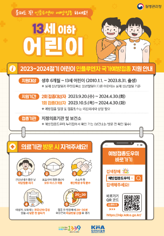 13세 이하 어린이 인플루엔자 예방 접종 정보