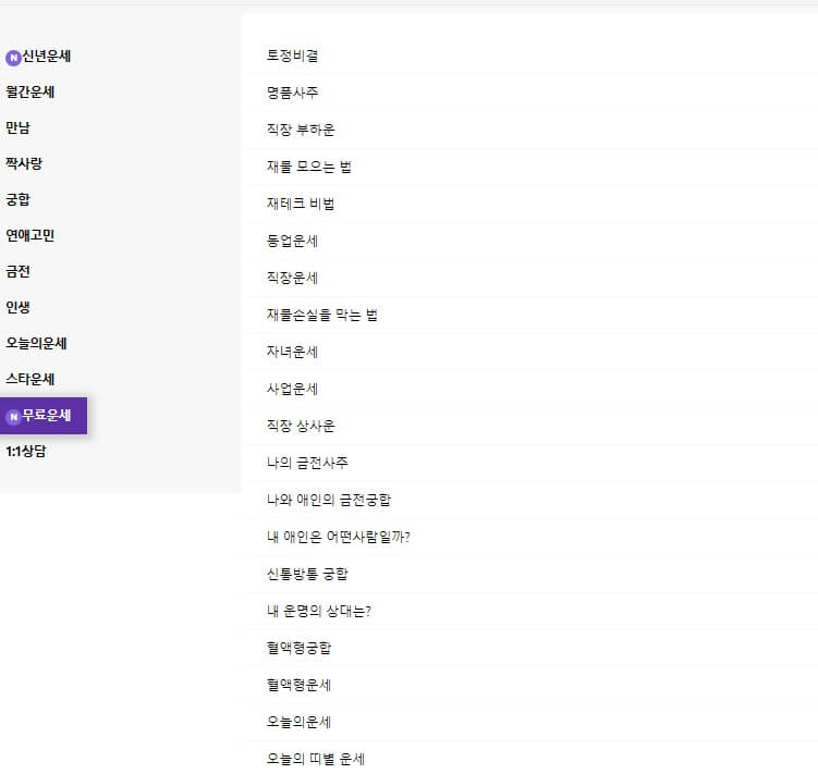 '토정비결, 사주, 궁합, 연애운, 오늘의 운세, 띠별 운세, 신년운세, 타로, 무료운세 등 운세 서비스 무료 제공