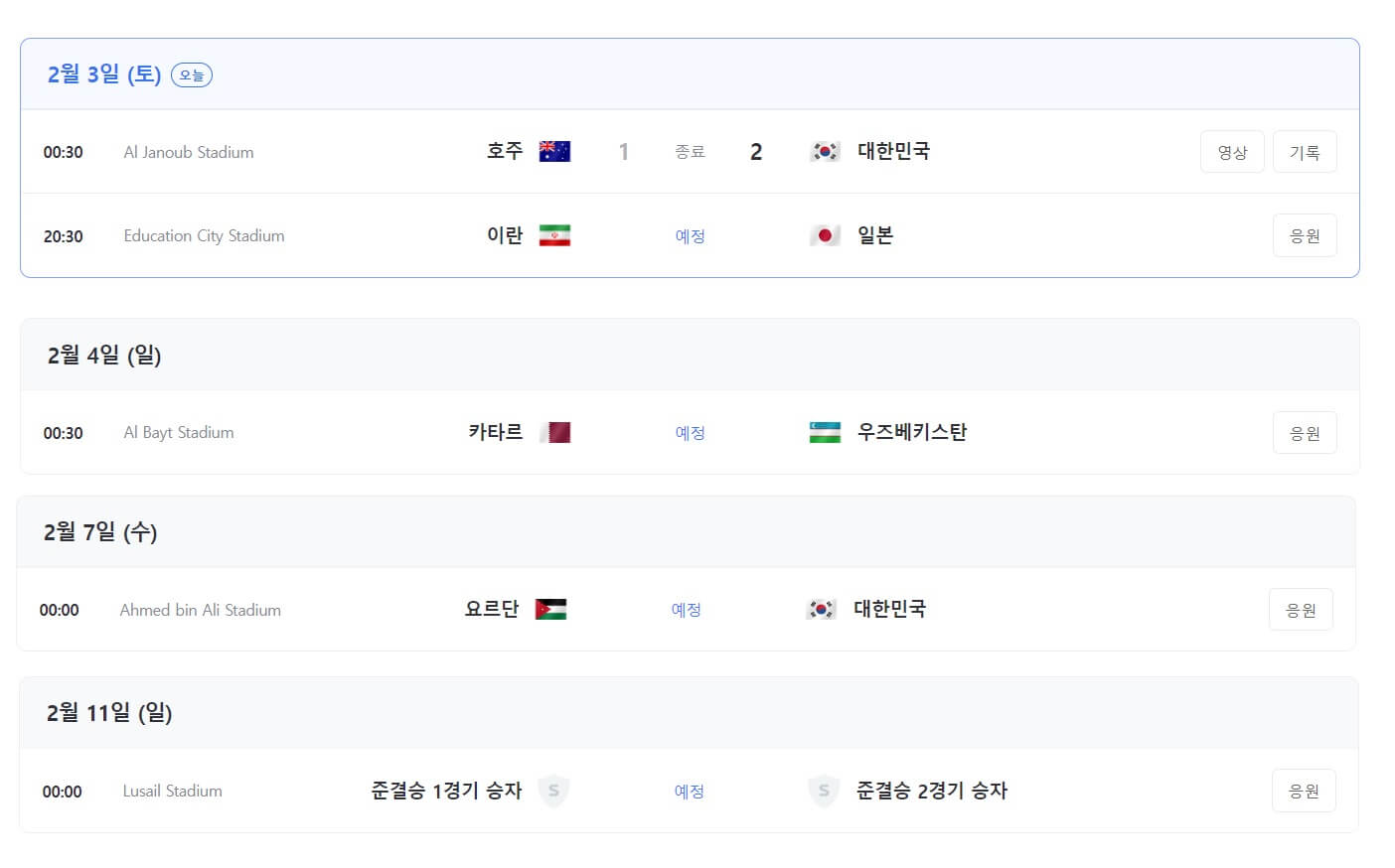 우리 대한민국 대표팀이 이번 4강에 진출해서 2월 7일 요르단을 상대로 결승 진출을 위한 경기를 시작합니다. 우리나라 선수들의 선전을 기원합니다. 그럼 자세한 경기 일정과 중계방송은 어디에서 볼 수 있는지 한번 알아보도록 하겠습니다.