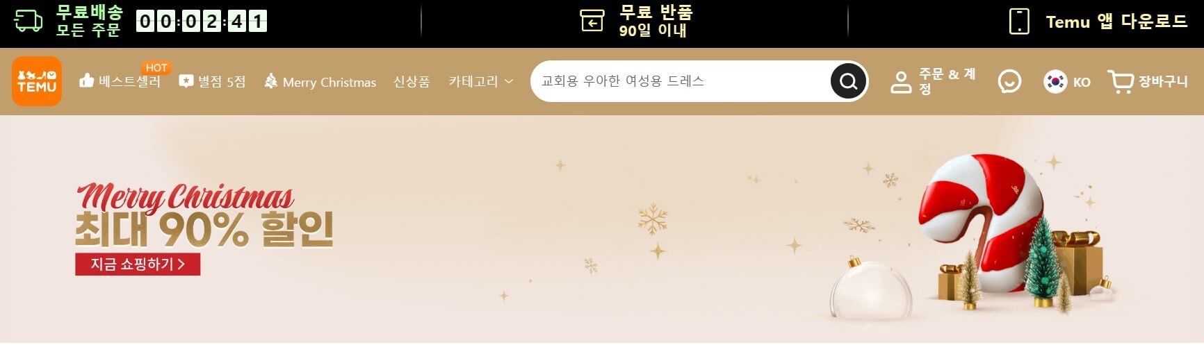 요즘 핫하게 뜨고 있는 쇼핑몰 temu 테무는 요즘 중국과 한국뿐만 아니라 미국까지 진출하여 사업을 확장하고 있습니다. 그것도 파격적으로 저렴한 제품들과 해외 무료배송을 무기로 하고 있습니다. 그 덕분에 많은 사람들이 이 쇼핑몰을 이용하고 있습니다. 또한 테무는 여러 가지 이벤트를 진행하고 있습니다. 이 글을 작성하고 있는 지금은 크리스마스를 이용한 세일 기간을 진행하고 있습니다.